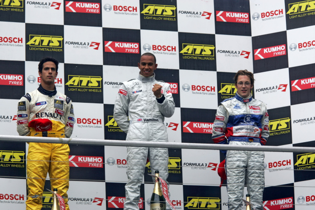 Mit Lewis Hamilton und Lucas di Grassi auf dem F3-Podium.