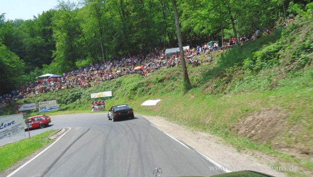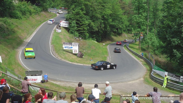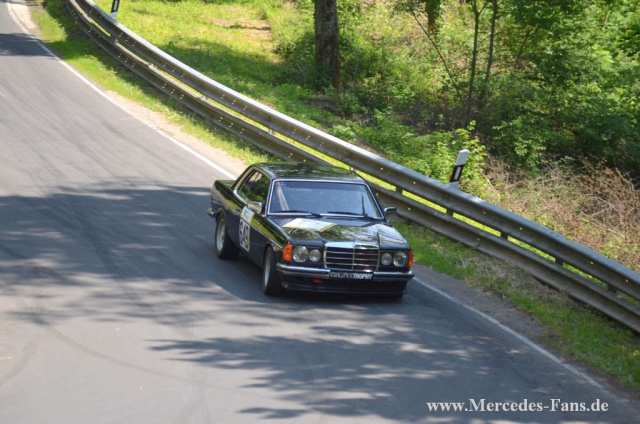 Am 27. und 28. Mai 2012 starteten dann wieder die Motoren in Wolfsfeld, mittendrin dieses Jahr Uwe Pfaar aus Kaarst mit seinem Mercedes W123 280CE aufgebaut nach dem Reglement der Gruppe 2. Das Starterfeld las sich wie das Who is Who der deutschen Bergrennszene. Es waren viele bekannte Bergrennfahrer dabei und auch Namen von erfolgreichen Rundstrecken- und Slalomfahrern fielen ins Auge. Uwe Pfaar startete in der Klasse historische Fahrzeuge bis zum Baujahr 1991 über 2000 ccm. In dieser Gruppe musste er sich gegen den Ex-DTM-BMW M3 eines Lokalmatadoren, einen Ford Capri 2600RS, einen VW Scirocco und Golf GTI, sowie einen BMW 325i durchsetzen.