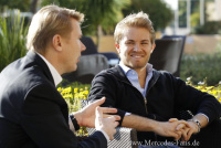 Dieser Moment ereignet sich täglich hunderttausende Male in aller Welt: zwei Menschen begegnen sich im Aufzug, begrüßen einander und beginnen, über ihre Arbeit und ihr Leben zu erzählen. Das Besondere an dieser Geschichte ist jedoch, dass sie sich in einem Aufzug in Monte-Carlo befinden, im gleichen Luxus-Appartementgebäude wohnen, nur durch wenige Etagen getrennt voneinander leben und beide ihr eigenes Kapitel in der langen Rennsport-Geschichte von Mercedes-Benz geschrieben haben. Mika Häkkinen war der erste Mercedes-Benz Weltmeister in der modernen Ära er gewann 1998 und 1999 mit McLaren Mercedes den WM-Titel. Nico Rosberg ist in der dritten Saison seit der Rückkehr der Silberpfeile der erste Fahrer, der seit dem großen Juan Manuel Fangio einen Grand Prix am Steuer eines Silberpfeils gewonnen hat. Im Vorfeld ihres Heimrennens trafen sich die beiden Rennfahrer, um über ihre Erlebnisse bei einer der weltweit spektakulärsten Sport-Veranstaltungen zu berichten.