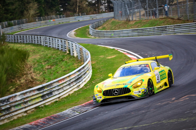 Startplatz neun belegte der einzige Black-Falcon-GT3 im Feld. Das schwarze Auto, das interessanterweise nicht in der "Stammklasse" SP9, sondern in der SPX - einer Klasse für nicht homologierte Autos - antrat, hatte weiterentwickelte Teile für eine eventuelle "Evo"-Version an Bord, die hier unter Rennbedingungen von den AMG-Piloten Thomas Jäger, Adam Christodoulou und Dominik Baumann unter Rennbedingungen getestet wurden. Mit Erfolg, wie die gute Rundenzeit beweist.