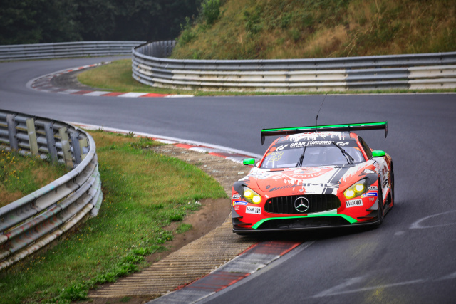 Im Rennen behauptete Engel nach dem Start die Führung. Von Startplatz fünf gestartet, machte Adam Christodoulou (GBR) mit der Nummer 16 schon in den ersten Kurven mehrere Positionen gut und bog damit als Zweiter auf die Norschleife ein. Christodoulou kam ein wenig früher als die Konkurrenz zum Fahrerwechsel und Teamkollege Stolz nutzte dies, um auf der nun abgetrockneten Strecke in Führung zu gehen und mit einer fehlerfreien Fahrt den Vorsprung auszubauen. Patrick Assenheimer (GER) hielt das Schwesterfahrzeug mit der Startnummer 6 dahinter auf Rang zwei. Zwei Stunden vor Rennende hielt nur noch ein Konkurrent mit den beiden Mercedes-AMG GT3 mit. Hubert Haupt (GER) übernahm nun das Führungsfahrzeug (#16) von Stolz und baute den Vorsprung zu Beginn seines Stints sogar noch aus. Dahinter lieferte sich Engel, der wieder von Assenheimer übernommen hatte, einen spannenden Kampf um Rang zwei und die ersten Drei rückten immer näher zusammen.