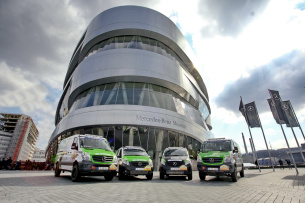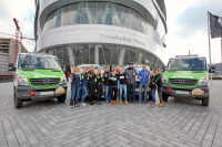 In dieser Woche wurde das komplette Team in Stuttgart vor dem Mercedes-Benz-Museum verabschiedet. Das Team besteht aus den vier Renn-Fahrzeugen inklusive Besatzung, zwei Begleitfahrzeugen mit Mechanikern sowie einem Sattelzug zum Transport der Ausrüstung. Diese Gelegenheit ließ sich auch der Leiter der Entwicklung Mercedes-Benz Vans Prof. Dr. Jörg Zürn nicht entgehen, um den Teilnehmerinnen persönlich alles Gute zu wünschen. Ebenfalls vor Ort war der Bereichsleiter Entwicklung Mercedes-Benz Large Vans Christian Flecksteiner, in dessen Verantwortung der große Sprinter fällt.