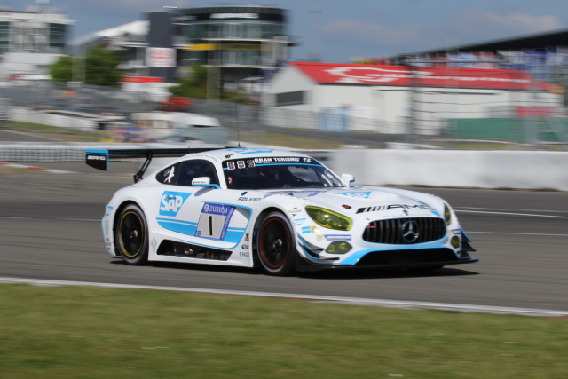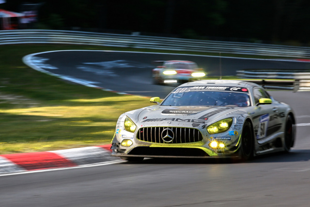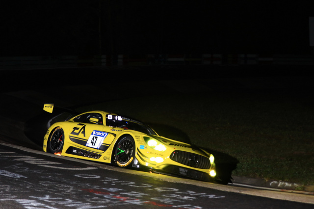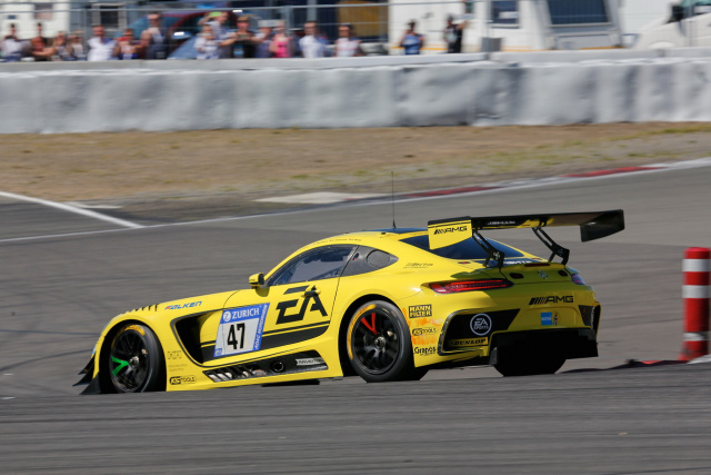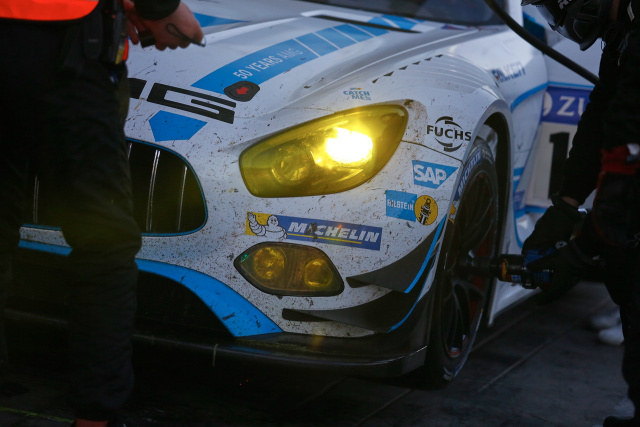 Auf einem unter diesen Umständen guten, aber insgesamt sicher enttäuschenden 5. Platz folgten die Vorjahres-Sieger mit der #1von Black Falcon. In diesem Jahr konnten die AMG-Teams keine Rolle beim Kampf um den Gesamtsieg spielen. Während man in den Trainings und auch beim Top30-Qualifying noch mutmaßte, dass Mercedes-AMG wegen der Balance of Performance nicht alles zeigen würde, wurde im Rennen klar, dass man tatsächlich nicht mit den anderen Top-Autos mithalten konnte. Zu groß war einerseits der Leistungs-Nachteil durch die BoP, andererseits kämpfte gerade der AMG extrem mit den neuen Reifen, die in der diesjährigen Hitze einfach nicht lange genug durchhielten. Die #1 zeigte über fast die ganze Renndistanz eine fehlerlose Fahrt und hielt sich die meiste Zeit in der selben Runde wie die Spitze. Im Regenchaos zum Schluss allerdings unterlief auch GT3-Star Maro Engel ein Fehler und er verunfallte auf der Nordschleife. Er konnte aber das Auto wieder auf die Strecke zurück bringen und den 5. Platz ins Ziel retten. Mehr wäre heute aber auch ohne diesen Fehler nicht drin gewesen.