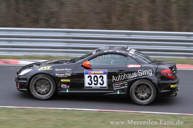 Dem 1 Lauf zur VLN-Langstreckenmeisterschaft werden die meisten Mercedes-Fans sicherlich mit großer Spannung entgegen gefiebert haben. Hatte sich doch gleich eine Armada von SLS AMG GT3 zum 1. Lauf der neuen Saison angekündigt. Aber auch in den kleinen Klassen gibt es großen Motorsport mit Stern, z.B. in der Klasse V6, in der das Team Motorsport Sing mit einem SLK 350 antritt. Trotz Zielankunft waren die Heidenheimer nicht ganz zufrieden. Denn wirklich schneller als im Vorjahr war der SLK dann doch nicht.