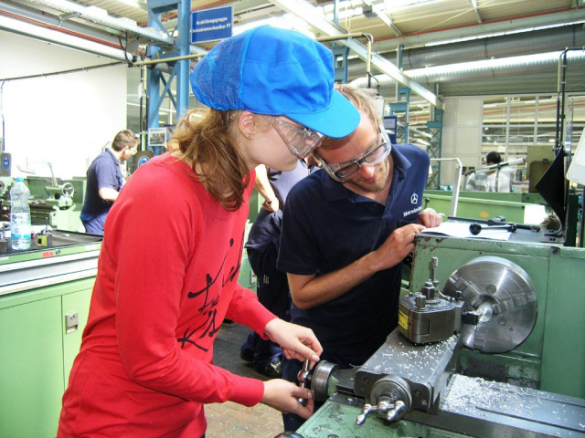 Wir wollen die Interessierten für die Ausbildung bei Mercedes-Benz begeistern und geben Ihnen bei uns die Möglichkeit, Technik aktiv auszuprobieren, so Karin Blümke, Leiterin Ausbildung und Training des Mercedes-Benz Werkes Berlin. Unter der Anleitung unserer Auszubildenden werden die Schülerinnen und Schüler Übungsteile an Dreh und Fräsmaschinen fertigen und kleine Aufgaben in der Pneumatik, CNC-Technik oder Elektroinstallationen durchführen. Abgerundet wird der Tag der Technik im Mercedes-Benz Werk Berlin mit einer Führung.