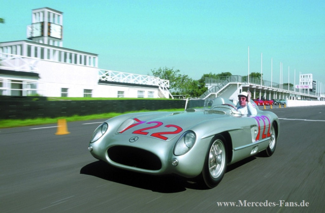 Sir Stirling Moss und Hans Herrmann, in der Nachkriegs-Epoche der Silberpfeile die Teamkollegen Fangios, erinnern ebenfalls an den fünfmaligen Formel-1-Weltmeister, davon zweimal auf Mercedes-Benz: Stirling Moss fährt zum Revival einen Rennsportwagen Mercedes-Benz 300 SLR (W 196 S) von 1955. Juan Manuel Fangio gewann mit exakt diesem Fahrzeug 1955 das Eifelrennen und den Großen Preis von Schweden, außerdem errang er zweite Plätze bei der Mille Miglia (ohne Kopilot), bei der Tourist Trophy und der Targa Florio (jeweils mit Karl Kling). Stirling Moss gewann ebenfalls mit einem W 196 S im Jahr 1955 zusammen mit Beifahrer Denis Jenkinson die Mille Miglia in einer Bestzeit, die bis heute unübertroffen ist