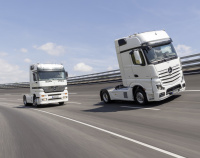 20 Jahre nach seiner Premiere ist der Fernverkehrslastwagen Actros mit gleich drei Fahrzeugen vertreten: Die Sattelzugmaschine Mercedes-Benz Actros 1848 LSNR wird vom Motor OM 471 angetrieben und leistet 350 kW (476 PS) aus 12,8 Liter Hubraum. Dazu kommen die Zugmaschinen Actros 1845 LS (OM 471, 330 kW/449 PS) und Actros 1846 LS (OM 470, 335 kW/455 PS). Der Mercedes-Benz Arocs 4143 K (OM 470 315 kW/428 PS) kommt als vierachsiger Kipper sowie der Arocs 1846 LS, OM 470; 335 kW (455 PS).