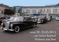 Das Jahrestreffen 2015 des Mercedes-Benz Veteranen Clubs findet erneut vom 22.-25. Mai am Seehof in Haltern am See statt. Das Hotel Seehof in Haltern hat im letzten Jahr viele Freunde gewonnen. Umgeben von reizvoller Landschaft des südlichen Münsterlandes bietet dieser Standort eine wirkliche Wohlfühlatmosphäre. Fahrzeugbewertung, Geschicklichkeitsparcours, Ersatzteilmarkt, MVC-Abend am Samstag und nicht zuletzt der Festabend am Pfingstsonntag.