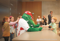 Fußballverrückte Autogrammjäger können sich zwischen 12 und 13 Uhr im Atrium die Unterschrift von VfB-Maskottchen Fritzle sichern. Für ein Erinnerungsfoto stehen der Nachbau eines Benz Patent-Motorwagens von 1886 sowie ein Mercedes-Benz SLS AMG bereit.