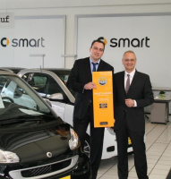 Gleich drei smart Standorte der Fahrzeugwerke Lueg, nämlich Bochum, Gelsenkirchen und Oberhausen, erhielten das begehrte Prädikat "smart & smile" für Service in Bestform. Herr Schittko als Vertreter der MBVD hat die Plakette freundlicherweise an Herrn Hohmann - stellvertretend für die smart Center - übergeben!