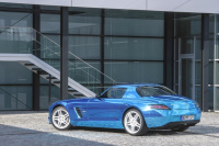 Mit dem SLS AMG Coupé Electric Drive startete Mercedes-AMG im Jahr 2013 in eine neue Zeitrechnung: Der Flügeltürer mit Hightech aus der Formel 1 ist die exklusivste und dynamischste Art, ein Automobil mit Elektroantrieb zu fahren. Der kraftvolle und lokal emissionsfreie Supersportwagen stellt die Entwicklungskompetenz der Mercedes-AMG GmbH eindrucksvoll unter Beweis. Das wegweisende Antriebspaket des SLS AMG Coupé Electric Drive garantiert ein völlig neuartiges, elektrisierendes Fahrgefühl: Für enorme Schubkraft sorgen vier Synchron-Elektromotoren mit einer Höchstleistung von zusammen 751 PS und einem maximalen Drehmoment von 1000 Newtonmetern. Von null auf 100 km/h beschleunigt der elektrische Flügeltürer in 3,9 Sekunden, die Höchstgeschwindigkeit beträgt 250 km/h (elektronisch begrenzt). Neben diesen beeindruckenden Fahrleistungen konnte sich der elektrische Flügeltürer auch in der Grünen Hölle beweisen: Der AMG Elektro-Supersportwagen ist das erste Serien-Elektrofahrzeug, das die legendäre Nordschleife des Nürburgrings in unter acht Minuten (7:56,234 Minuten) absolviert.