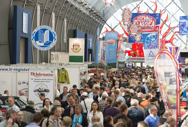 Mehr als 1.250 Aussteller aus mehr als 30 Nationen haben bereits jetzt Präsentationsflächen bei der 27. Techno-Classica Essen 2015 gebucht: Nahezu alle Ausstellerflächen in den 20 Hallen und auf den vier Freigeländen der Messe Essen sind rund vier Monate vor Beginn der Klassik-Messe belegt. Die Techno-Classica Essen 2015 wird auch im nächsten Jahr mehr sein als nur die „Weltmesse für Oldtimer, Classic- & Prestige- Automobile, Motorsport, Motorräder, Ersatzteile, Restaurierung und Welt-Clubtreff“, wie sie ihr Untertitel beschreibt. Sie ist mit über 220 ausstellenden Klassiker-Clubs und - Interessengemeinschaften wieder der weltgrößte Club-Treff der Old- und Youngtimer-Szene. Und die meist aufwendig inszenierten Präsentationen von über 25 deutschen und internationalen Automobilherstellern machen die Techno-Classica auch im kommenden Jahr wieder zur größten Historien-Schau der Automobilindustrie weltweit.