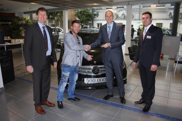 Fast so gut gut wie am ersten Tag: Mercedes-Gebrauchtwagen mit dem Label "Junge Sterne" glänzen ähnlich stark wie ein Neuwagen. Junge Sterne sind Leasing- und Finanzierungsrückläufer, Werkswagen oder Fahrzeuge aus dem Firmenangehörigengeschäft oder aus Inzahlungnahmen. Sie sind auf höchste Qualitätsstandards geprüft. Von den Jungen Sternen sind bereits eine halbe Million Kunden in Deutschland überzeugt. Der 500.000ste Junge Stern wurde jetzt beim Autorisierten Mercedes-Benz Partner S&G Automobil Aktiengesellschaft in Karlsruhe an den Kunden Markus Semmler übergeben: ein schwarzes C-Klasse T-Modell. Überreicht wurde das Fahrzeug von S&G Verkaufsleiter Udo Betz und Dirk Hafrank, Verkaufsmanager Gebrauchtfahrtzeuge des Mercedes-Benz Vertrieb Deutschland (MBVD).