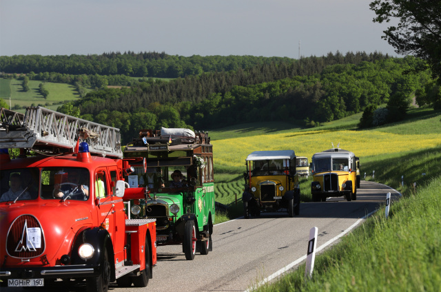 Aus Dänemark, Luxemburg, der Schweiz sowie dem gesamten Bundesgebiet reisten Bus-Veteranen und Gäste an, um an eine Zeit zu erinnern, als das Busfahren noch eine technische Revolution war und eine Tour über 30 Kilometer 2 Stunden und 15 Minuten dauerte. Diese Zeit benötigte der Post-Express von Bad Mergentheim über Dörzbach nach Künzelsau, als er vor 124 Jahren im Auftrag der Württembergischen Post mit zehn Personen an Bord Briefe und Pakete auslieferte. Der Bus der Daimler-Morgen-Gesellschaft tuckerte seinerzeit mit einem von Wilhelm Maybach konstruierten Phoenix Zwei-Zylinder mit zehn PS und Spritzdüsenvergaser durch die romantische Wein-Region. Die Kraftübertragung erfolgte durch ein Drei- oder Viergangschaltgetriebe über Ritzel auf die Hinterräder – das modernste Triebwerk, das die Motortechnik aufzubieten hat.