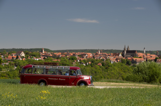 Nostalgische Fahrzeuge, glänzendes Chrom und stolze Busbesitzer – das „8. Internationale Oldtimer-Bustreffen" in Bad Mergentheim stieß auf große Resonanz. 3.000 Besucher zeigten sich in der romantischen Altstadt von den originellen und gut erhaltenen Bussen fasziniert. Der älteste Bus war 99 Jahre alt.