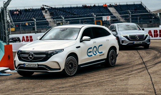 Als Mercedes-Benz Primus der neuen Produkt- und Technologiemarke EQ besitzt der EQC ein komplett neu entwickeltes Antriebssystem mit je einem kompakten elektrischen Antriebsstrang (eATS) an Vorder- und Hinterachse. Damit hat der EQC die Fahreigenschaften eines Allradantriebs. Zur Verringerung des Stromverbrauchs und zur Steigerung der Dynamik sind die eATS unterschiedlich ausgelegt: Die vordere E-Maschine ist für den schwachen bis mittleren Lastbereich auf bestmögliche Effizienz optimiert, die hintere bestimmt die Dynamik. Zusammen bringen sie eine Leistung von 300 kW auf die Straße, das maximale Drehmoment beider E-Maschinen beträgt zusammen 765 Nm. Dank einer ausgeklügelten Betriebsstrategie ist eine elektrische Reichweite von über 450 km nach NEFZ möglich.