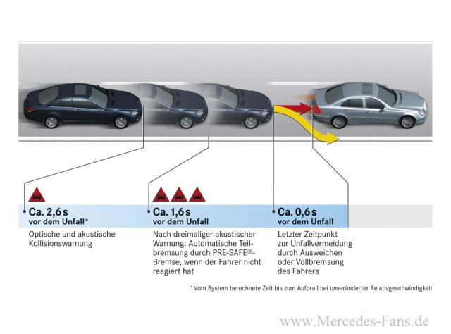 B-Klasse als weitere Weltneuheit über COLLISION PREVENTION ASSIST, ein radargestütztes System zur Verhinderung von Auffahrunfällen, sowie über eine Vielzahl von Assistenzsystemen.