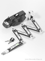 Innovativ und formschön und damit typisch smart ist das smart ebike Faltschloss mit ebike Piktogramm. Die innovative Gelenkkonstruktion sorgt für ein kompaktes Maß und bietet hohen Schutz. Der Lieferumfang beinhaltet eine praktische Tasche zum Verstauen des 90 cm langen Schlosses am ebike. Preis: 83,90 Euro*.