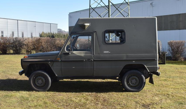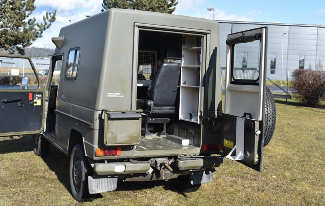 Der hier gezeigte 230 GE stammt vom Schweizer Militär. Der Rahmen ist in einem sehr guten Zustand. Ausgestattet ist der Puch mit einem gedämmten Hochdach mit einem Schiebefenster links und einem feststehenden Fenster rechts. Der 230 GE mit zuschaltbarem Allradantrieb ist Ideal für die Jagd oder als Basis für einen Camper-Umbau. S-TEC bietet auf diesen Puch 230 GE Kastenwagen eine Garantie von 12 Monaten.