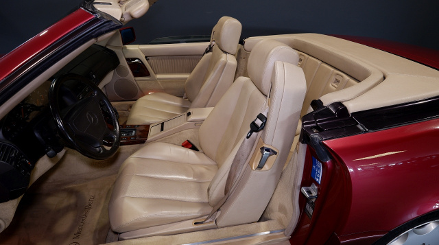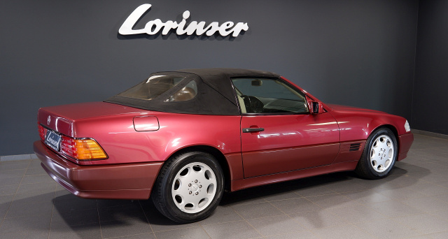 Bei Lorinser steht nun diese Schönheit in almandinrot zum Verkauf. Der Mercedes-Benz 300 SL-24 wurde im Mai 1993 das erste Mal zugelassen und ist seitdem 130.000 Kilometer gelaufen. Der 3-Liter-Motor mit sechs Zylindern leistet knackige 231 PS. Für die passende Kombination zum almandinroten Lack kommt eine Leder-Innenausstattung champignon.
