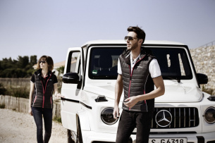 Wenn es am Abend etas kühler wird, dann wärmen die sportiven Westen aus der AMG Collection. Sie verfügen über eine abtrennbare Kapuze, einen wasserfesten Reißverschluss und einen Kragen mit hochschließendem Kinnschutz und sind durch ihr geringes Gewicht der perfekte Begleiter für jedes Wetter. Für die Damen hält Mercedes-Benz einen kuscheligen schwarzen Fleece-Poncho in der Collection mit eingesticktem Stern zum Überwerfen bereit, der exklusiv von FRAAS für Mercedes-Benz angefertigt wird.
