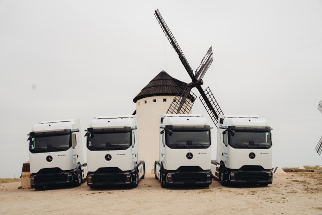Das spanische Transportunternehmen Autónomos Manchegos Agrupados (A.M.A.) hat seine Flotte um 43 Mercedes-Benz Actros 1848 LS ProCabin erweitert. Die feierliche Übergabe der besonders effizienten Sattelzugmaschinen fand in außergewöhnlicher Kulisse statt: vor den weltberühmten Windmühlen von Campo de Criptana, die durch Don Quijotes Kampf gegen die „Riesen“ literarische Berühmtheit erlangten.
