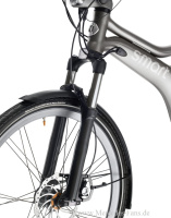 Auf dem smart Messestand im Forum zeigt die urbane Mobilitätsmarke innovative Zubehörlösungen, die Komfort und Funktionalität des smart ebikes weiter steigern. Auf Wunsch erhöht künftig eine Federgabel den Fahrkomfort des Pedelecs. Bei der in Zusammenarbeit mit dem renommierten Spezialisten SRAM an das smart ebike angepassten RockShox-Federgabel lässt sich der Federweg per Luftdruck einstellen. Maximal steht ein Federweg von 100 mm zur Verfügung. Ferner kann die Zugstufe extern verstellt werden. Mit Hilfe eines leicht zu erreichenden Hebels an der Gabelkrone lässt sich zudem die Gabel auch während der Fahrt blockieren praktisch etwa an Steigungen. Das TurnKey-Lockout-System verhindert dabei Beschädigungen in der Gabel, wenn trotz harter Schläge die Arretierung nicht gelöst wird. Die smart ebike Federgabel besteht aus 32 mm starken Standrohren aus verchromtem Stahl, einer geschmiedeten Aluminium-Gabelkrone sowie Magnesium-Tauchrohren. Erhältlich ist sie ab Ende September 2013.