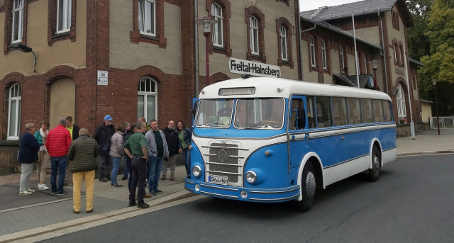Am 25.09. startete die erste Tour Richtung Osterzgebirge. Nach der Besichtigung von einmaligen Objekten der Kettensägen-Schnitzkunst in Blockhausen, ging es weiter zum Mittagessen nach Seiffen und anschließendem Bummel durch die traditionsreichen Läden mit den Weihnachtsprodukten des berühmten erzgebirgischen Handwerks. Über malerische Straßen wurde dann das nächste Ziel, Dippoldiswalde, angesteuert. Nach einem kurzen Kaffee-Stopp am „Bimmelbahnshop“ holte die Gruppe Herr Belschner mit seinem IFA H6-Oldtimerbus ab und brachte alle zum Bahnhof Freital, von wo aus die Rückfahrt mit der dampfbetriebenen Weißeritztalbahn entlang des gleichnamigen wildromantischen Flusses und der Talsperre Malter angetreten wurde.