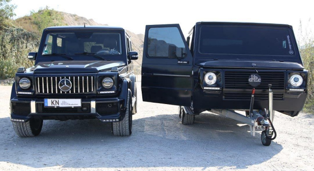 Wie es der Anblick vielleicht schon vermuten lässt, wurde der zweiachsige Anhänger aus zwei zerlegten Mercedes-Benz G-Klassen zusammengebaut. Ausgestattet ist der G-Anhänger mit einer Kabine und einer Ladefläche. Das Design erinnert stark an den Mercedes-AMG G63 6x6. Das gute Stück scheint weltweit ein Unikat zu sein. Entwickelt und designed wurde das Einzelstück von Adils Firma „dLc Engineering", und so ziert den Anhänger auch nicht der Stern im Grill, sondern das Logo von dLc Engineering.