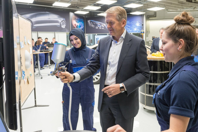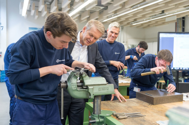 Ein außergewöhnlicher Tag in der Ausbildungswerkstatt im Mercedes-Benz Werk Sindelfingen: Zum Ausbildungsstart begrüßte Prof. Dr. Thomas Weber, Mitglied des Vorstandes der Daimler AG, verantwortlich für Konzernforschung & Mercedes-Benz Cars Entwicklung, die neuen Auszubildenden und Studierenden der dualen Hochschule im Mercedes-Benz Werk Sindelfingen. Die jungen Kolleginnen und Kollegen nutzten die Gelegenheit, mit dem langjährigen Manager ins Gespräch zu kommen und stellten ihm Fragen rund um das Unternehmen und seine Aufgaben als Vorstand.