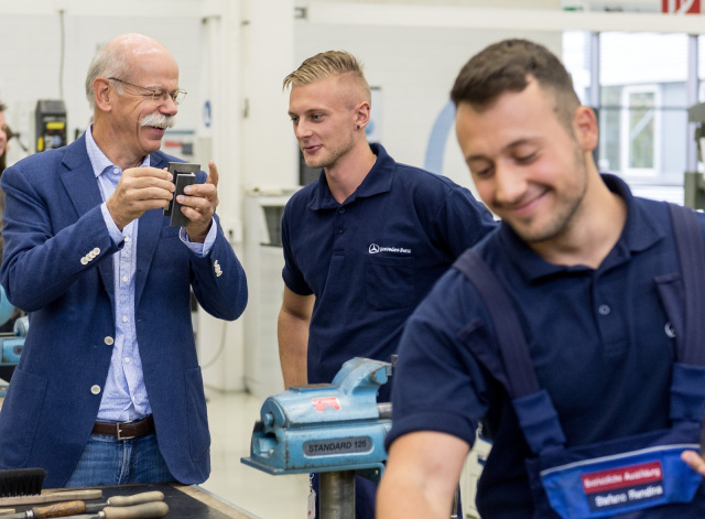 Zum Ausbildungsstart besuchte Dieter Zetsche, Vorsitzender des Vorstands der Daimler AG und Leiter Mercedes-Benz Cars, die rund 245 neuen Auszubildenden und dualen Studenten des Mercedes-Benz Werk Untertürkheim. „Unsere neuen Kollegen überzeugen uns Tag für Tag: mit Persönlichkeit, guten Noten, Engagement und jeder Menge Begeisterung für den Stern. Genau solche Talente brauchen wir, denn wir haben noch viel vor“, sagte Zetsche.