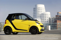 Ab April 2013 bringt smart mal wieder Farbe ins Spiel: Das neue als Coupé und Cabrio erhältliche Sondermodell smart fortwo edition cityflame setzt mit seinen Bodypanels in flame yellow ein Ausrufezeichen. tridion-Sicherheitszelle und Leichtmetallräder sind hingegen schwarz lackiert. Im Innenraum setzt sich der Kontrast fort, die exklusiven schwarzen Sitze in Lederoptik haben markante gelbe Kunstledereinsätze und...,
