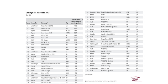 Die Top-50-Lieblinge der Autodiebe