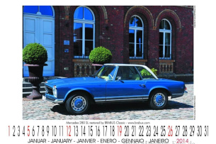 Das Jahr 2013 neigt sich dem Ende entgegen. Haben Sie schon an einen neuen Wandkalender für 2014 gedacht? Wie wäre es denn mit dem 'SL Pagode 2014' Kalender? Der Kalender zeigt auf 13 Blättern die schönen Roadster der Baureihe W113. Die Palette der Fotomodelle reicht vom einsamen SL um Mitternacht in einem Parkhaus in Paris über meisterhaft von Grund auf von der Classic Division von BRABUS neu aufgebaute Mercedes Roadstern bis zur Pagode im Rennlook. Der 'SL Pagode 2014' Kalender im Format 29,7 x 42 Zentimeter (DIN A3) kann für 25 Euro exklusiv online über www.99rodeodrive.com bezogen werden. Für Bestellungen aus Deutschland, Österreich, der Schweiz und dem Fürstentum Liechtenstein fallen keine Versandkosten an.