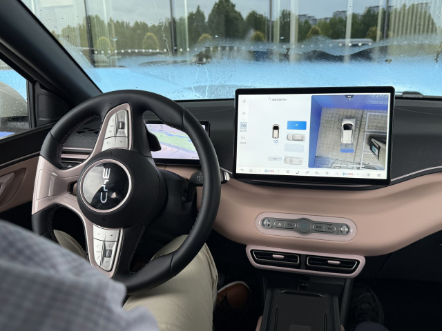 Nicht einmal kommt ein Gefühl der Unsicherheit auf. Auch die Autobahnausfahrt meistert das autonome Vehikel problemlos. Rund zwei Kilometer vorher wechselt das Auto von der linken auf die mittlere Spur und befindet sich wenige hundert Meter vor der Abzweigung ganz rechts. Selbst in der Kurve der Ausfahrt kann sich der Fahrer noch entspannt zurücklehnen. God’s Eye souverän. Kein zuckendes Lenkrad oder unruhige Manöver. Erst als Richtung Mautstation geht, streicht das System die Segel. Bleibt noch das Parken. Solange genug Platz zum Rangieren vorhanden ist, parkt der Seagull selbstständig auch in eine knifflige Parklücke rückwärts ein. Wenn nötig auch ferngesteuert durch das Smartphone. Nach einem drahtlosen Update kann der Seagull dieses Manöver auch mit der Front voraus durchführen. Die Funktionen für das autonome Fahren in der Stadt werden ebenfalls in Zukunft per OTA-Updates aufgespielt. Ob, wann und in welcher Form das Auge Gottes nach Deutschland kommt, steht noch in den Sternen. Die Regularien machen BYD noch einen Strich durch die Rechnung.