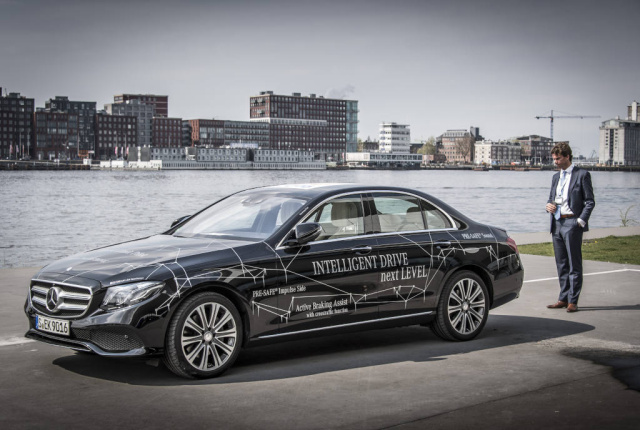 Die Summe der in diesem Fahrzeug bereits serienmäßig verfügbaren Innovationen, wie zum Beispiel der Aktive Spurwechsel-Assistent, der Remote Park-Pilot, mit dem das Auto via Smartphone ein- und ausgeparkt werden kann oder die erste Car-to-X-Kommunikation in Serie macht die E-Klasse zum intelligentesten verfügbaren Fahrzeug auf der Straße. Bereits letzte Woche fuhren drei Mercedes-Benz Actros Lkw vernetzt via WLAN zum automatisierten Dreier-Verbund (Highway Pilot Connect) von Stuttgart nach Rotterdam. Damit leisteten die Fahrzeuge aktive Unterstützung bei der Initiative European Truck Platooning Challenge 2016 der niederländischen Regierung im Rahmen ihrer EU-Ratspräsidentschaft.