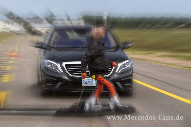 Durch den Einsatz einer Stereo-Kamera und deren intelligente Vernetzung mit den anderen Fahrassistenzsystemen an Bord übernimmt die neue S-Klasse von Mercedes-Benz teilautonom das Fahren inklusive Lenken bis zu einer Geschwindigkeit von bis zu 60 km/h, was besonders beim nervigen Stop & Go innerhalb eines dynamischen Staus den Fahrer völlig entlastet. Allerdings ertönen Warnsignale und folgt die Systemdeaktivierung, wenn er seine Hände vom Lenkrad nimmt es soll und kann den Fahrer nicht voll ersetzen.