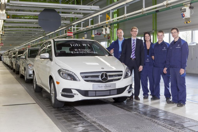 Im Mercedes-Benz Werk Rastatt läuft heute die erste B-Klasse Electric Drive vom Band. Damit werden am Standort erstmalig Mercedes-Benz Modelle mit Verbrennungsmotor und Elektroantrieb auf der gleichen Linie produziert. Die B-Klasse Electric Drive basiert auf der Mercedes-Benz Frontantriebs-Architektur der neuen Mercedes-Benz Kompaktwagengeneration und nutzt den modularen Komponentenbaukasten. Die Batterien befinden sich sicher im Unterboden des Fahrzeugs (Energy Space).