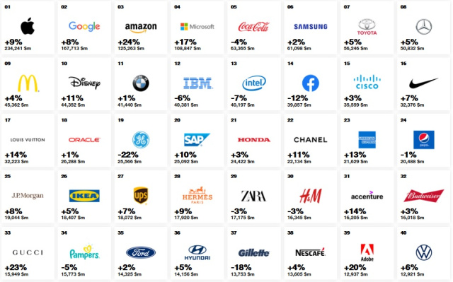 Damit bleibt Mercedes-Benz nach wie vor die einzige europäische Marke in den Top Ten. Gegenüber 2018 stieg der Markenwert des Sterns um weitere fünf Prozent auf 50,832 Milliarden US-Dollar. Seit 2009 konnte Mercedes-Benz seinen Wert kontinuierlich erhöhen.