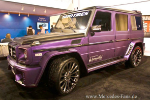 Dass dezent bei dem japanischen Tuner "Wald International" nicht im Trend liegt, haben wir auf Mercedes-Fans.de schon des Öffteren gezeigt. Diesbezüglich macht denn auch das Mercedes G55 AMG, den Walds USA-Partner Jonari auf der SEMA Show 2012 in Las Vegas zeigte, keine Ausnahme. Zu dem Breitbau-Kit mit gierigen Lufteinlässen, der neuen Motorhaube und den riesigen Rädern gesellt sich eine Kolorierung in Lila! Das nennt man ja wohl Mut zur Farbe.