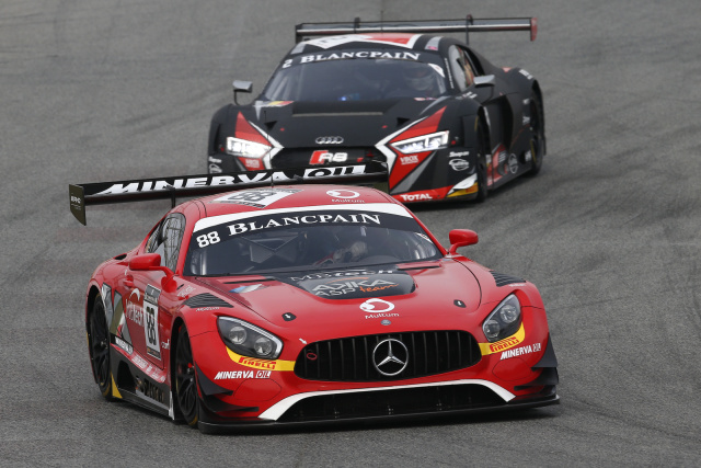Von Platz drei gestartet, erwischte Tristan Vautier einen sehr guten Start und setzte sich gleich nach der ersten Runde an die Spitze des Feldes. Im Verlaufe des Rennens konnte der Franzose den Vorsprung auf die Verfolger weiter ausbauen. Nach dem Fahrerwechsel knüpfte Felix Rosenqvist an die Leistung seines Teamkollegen an und brachte den Mercedes-AMG GT3 #88 an Position eins über die Ziellinie. Für das französisch-schwedische Duo war es der erste Saisonsieg in der Blancpain GT Series. Dominik Baumann und Maximilian Buhk, AMG-Team HTP Motorsport, beendeten das Rennen auf dem achten Platz und feierten den Titel in der Fahrer- und Mannschaftswertung für das AMG-Team HTP Motorsport.