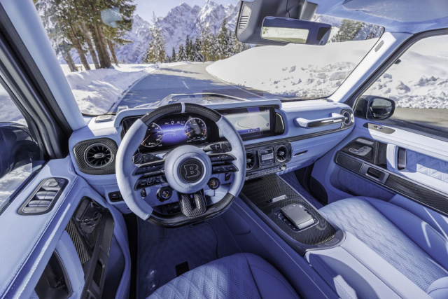 Das Supercar kommt mit einem Sicht-Carbon-Breitbaukit in Sichtweite. Sein speziell konstruiertes BRABUS Spezialfahrwerk mit Portalachsen ist für härtesten Geländeeinsatz konzipiert. Dieses Chassis erlaubt nicht nur maximale Achsverschränkung, sondern bietet auch eine enorme Bodenfreiheit von 47 Zentimetern.