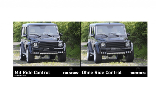 Für Mercedes G-Klasse Fahrer, die sich mehr Fahrkomfort bei unverändert hoher Fahrsicherheit: wünschen, entwickelte Mercedes Tuner BRABUS ein neues Fahrwerk: das BRABUS Ride Control. Mit dem per Knopfdruck vom Cockpit aus verstellbaren Ride Control Fahrwerk bietet BRABUS ein innovatives Fahrwerk an, welches hohen Komfort mit sportlichem Handling und großen Sicherheitsreserven kombinieren soll.