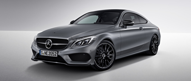 Neu im Modellprogramm von C-Klasse Coupé und Cabriolet ist die Night Edition, basierend im Exterieur auf AMG Line und Night-Paket. Weitere Merkmale sind exklusive, schwarz hochglänzend lackierte (19") AMG Leichtmetallräder im Vielspeichen-Design und mit einem glanzgedrehten Felgenhorn sowie ein besonderer Diamantgrill. Er besitzt Pins in Schwarz sowie eine Lamelle in Schwarz hochglänzend mit Chromeinleger. Das Interieur entspricht der AMG Line, ergänzt um ein unten abgeflachtes Multifunktions-Sportlenkrad in Leder/Mikrofaser DINAMICA sowie die „ Night Edition“-Plakette auf der Mittelkonsole.