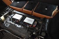 Vor dem Einbau werden die Blechflächen noch sorgfältig gedämmt, um unangenehme Nebengeräusche zu verhindern. Einzeln angesteuert werden die Lautsprecher von einer sehr kompakten, klanglich hervorragenden Mosconi Gladen Mehrkanal-Endstufe, in der ein programmierbarer Digital Sound Prozessor integriert ist. Damit lässt sich über eine Messanalyse ein linearer Frequenzgang im Fahrzeug erzielen und die akustisch unterschiedlichen Laufzeiten der Lautsprecher können ausgeglichen werden – zwei entscheidende Faktoren für eine Audiowiedergabe in HiFi-Qualität im Auto.