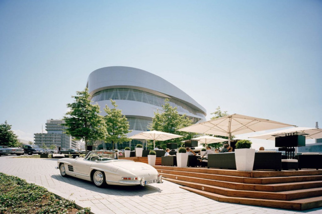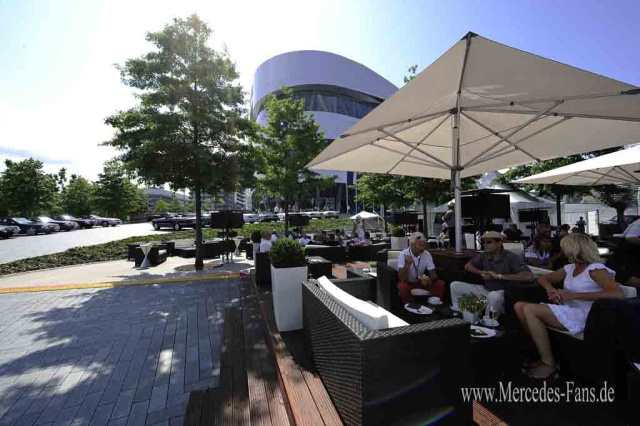 Die Mercedes-Benz Lounge auf dem Hügel am Museum öffnet exklusiv für Cars & Coffee bereits ab 9 Uhr. Bis 23 Uhr gibt es dort sommerliche Speisen und Getränke.