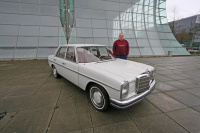 Sven Janowski ist als Aussendienstler im KFZ-Teilehandel tätig und beruflich viel auf Achse. Trotzdem gibt es für ihn nach Feierabend nichts Schöneres als in seinen vollrestaurierten 1974er W115 zu springen. Umgangssprachlich auch Strich Acht genannt. Als er den Wagen übernahm, erwartete ihn eine interessante Überraschung. Nicht nur dass der Wagen vom ersten bis zum letzten Tag in einer Mercedes-Werkstatt gewartet wurde, der Vorbesitzer hat auch jeden Papierschnipsel vom Prospekt über jede Servicerechnung bis hin zum originalen Kaufvertrag aufbewahrt. Fuhr Sven den Wagen anfangs nur selten aus der Garage um nicht so viele Kilometer abzuspulen, so hat er sich schweren Herzens zu einer regulären Nutzung entschlossen.