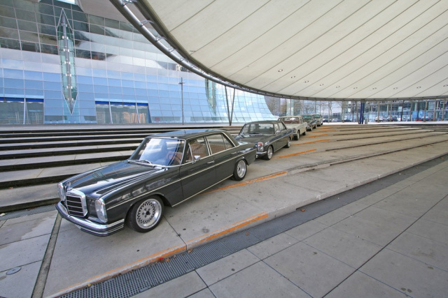 Der dritte /8 im Bunde ist der 250 von Jenns Jürries. Es ist nicht sein einziger historischer Mercedes, dafür der originalste mit der wohl interessantesten Farbkombination. Aussen weiss, was ja heute wieder stark im Trend liegt, innen erstrahlt die Ausstattung in edelstem Rot. Kein Wunder, schliesslich wurde dieser Stern einst von einem Vorstandsmitglied der Firma Jacobs durch Wien und seine Umgebung chauffiert. Jens besitzt eine eigene Autowerkstatt, was bei so einem umfangreichen Hobby durchaus von Vorteil ist und nimmt mit seinen anderen Fahrzeugen an Wettbewerben wie zum Beispiel den Lowrider Masters teil.