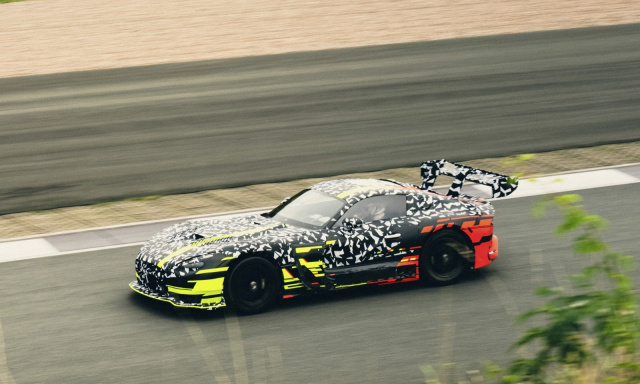 Nach den abschließenden Arbeiten am Prototyp des CONCEPT AMG GT TRACK SPORT Ende Juli in Affalterbach beginnt nun eine Phase intensiver Erprobungen. Der mit gelben und roten Akzenten versehene Prototyp wird auf verschiedenen Testgeländen und Rennstrecken ersten fahrdynamischen Prüfungen unterzogen. Als jüngstes Mitglied der GT-Familie basiert das Modell auf den grundlegenden Prinzipien des bekannten Sportwagens aus Affalterbach, setzt jedoch in Bezug auf Radikalität und Kompromisslosigkeit neue Maßstäbe.