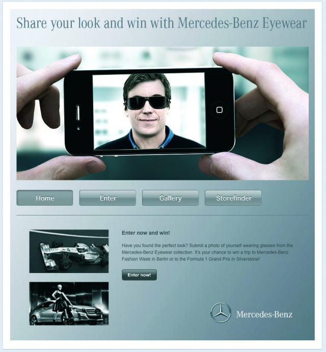 Mit dem Wettbewerb Show your own look and win with Mercedes-Benz Eyewear sind alle dazu aufgefordert, ihren persönlichen Look auf Facebook zu teilen. Als Gewinn winken u.a. Karten für den Formel 1 Grand Prix in Silverstone. Abgestimmt wird digital: Über die Anzahl der Likes auf der Rodenstock Facebook-Fanseite werden zunächst die zehn beliebtesten Looks ermittelt. Den endgültigen Sieger unter den Top Ten kürt dann eine Jury. Für die Gewinner gibt es zu den Karten auch ein großzügiges Taschengeld.